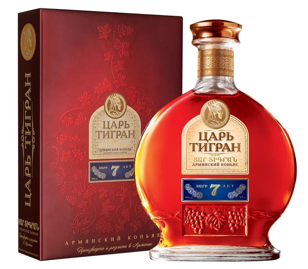 Вірменський коньяк Царь Тигран продається в фляшці об'ємом 0,5л в подарунковій коробці.
