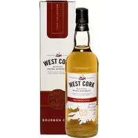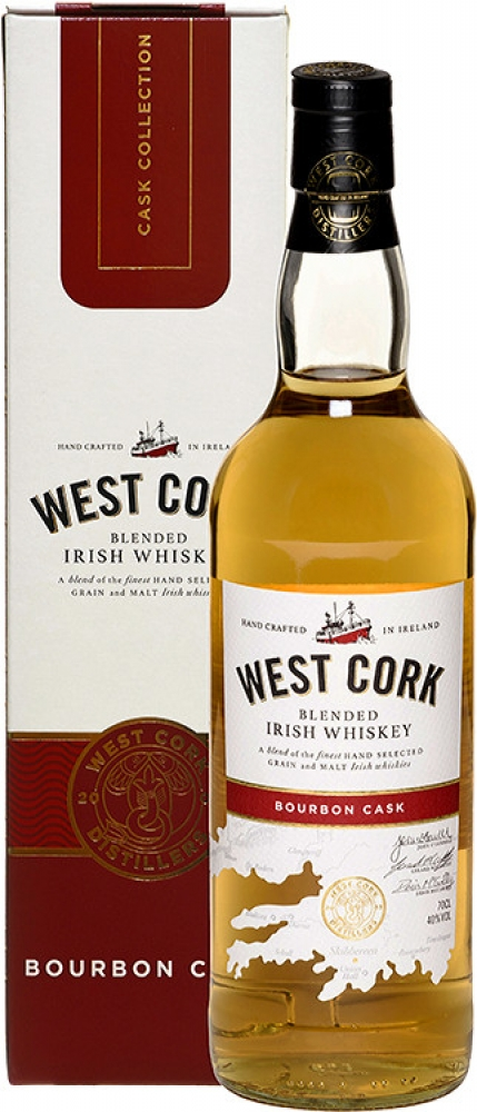 West Cork Bourbon Cask - базовий купажований віскі лінійки "Вест Корк", бленд якого складають 75% ірландського однозернового віскі і 25% ірландського односолодового віскі з кращих інгредієнтів і м'якої джерельної води. Всі роботи з виробництва віскі виробляються вручну. Витриманий 3-4 роки в бочках з-під бурбона першого наливу, віскі отримує гладкий, тонкий, Пітко смак з фруктовими відтінками і делікатними ванільними нюансами.